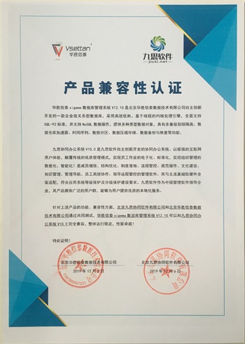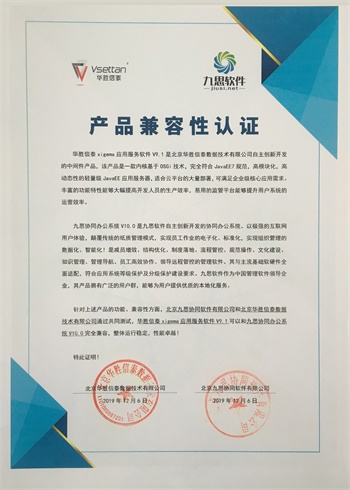 針對上述產品的功能,兼容性方面,北京九思協同軟件有限公司和北京華勝信泰數據技術有限公司通過共同測試,華勝信泰xingema數據庫管理系統V12.10、華勝信泰xingema消息服務軟件V9.0、華勝信泰xingema應用服務軟件V9.1可以和九思協同辦公系統V10.0完全兼容,整體運行穩定,性能卓越!