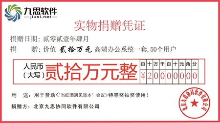 九思軟件受邀出席“當紅酒遇見資本”會議活動,為論壇贊助價值20萬元的“高端協同辦公系統。