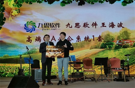 九思軟件董事長王海波的演講得到了與會各行業高端人士、企業精英的積極贊譽,紛紛表達了期盼未來能與九思建立合作的意向。晚宴上,九思軟件贊助的價值20萬的“高端協同辦公系統”成為抽獎環節中的特等獎,在現場引起了轟動。眾多企業家們熱情高漲地參與到特等獎的抽獎活動中,將晚會推向了高潮!