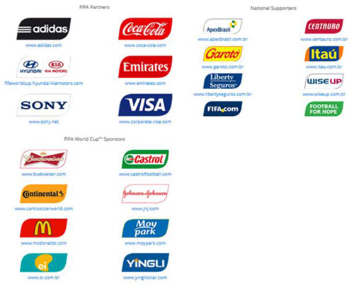 以下是FIFA世界杯網(wǎng)站上列出的合作伙伴、贊助商和擁護(hù)者, 而它們有可能面臨攻擊。在接近攻擊發(fā)起時,可能還會增加更多的目標(biāo)企業(yè)。