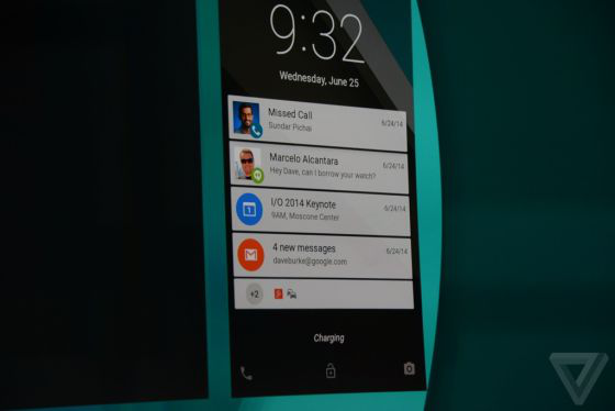 Android Wear可實(shí)現(xiàn)手機(jī)和手表的實(shí)時(shí)交互。用戶可以通過(guò)手表告訴手機(jī)制定提醒,手機(jī)會(huì)自動(dòng)觸發(fā)該動(dòng)作;同時(shí)當(dāng)你在手表上忽略一個(gè)通知時(shí),它也會(huì)在手機(jī)上自動(dòng)消失;通過(guò)手表進(jìn)行搜索,搜索結(jié)果也會(huì)顯示在手機(jī)上。此外,來(lái)電顯示會(huì)呈半圓形提示是否接聽(tīng),滑動(dòng)界面忽略該來(lái)電。
