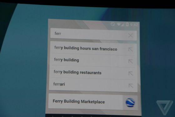 Android L另一大改變?cè)谟谝苿?dòng)瀏覽器端,據(jù)Chrome負(fù)責(zé)人介紹,每天至少有3億活躍用戶使用移動(dòng)版Chrome。全新移動(dòng)網(wǎng)頁(yè)端同樣使用“材料設(shè)計(jì)”設(shè)計(jì)語(yǔ) 言,并且動(dòng)畫看起來(lái)就像原生應(yīng)用一樣,幀數(shù)可達(dá)60FPS。而谷歌搜索加入應(yīng)用內(nèi)搜索,比如搜索某商場(chǎng)名稱時(shí)會(huì)提供谷歌地圖檢索結(jié)果,點(diǎn)擊后可直接進(jìn)入應(yīng) 用。
