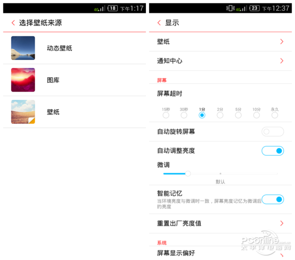 通常情況下,手機屏幕的設置操作在手機設置->顯示一欄中,主要有壁紙、屏幕超時、調整亮度這幾個選項。壁紙選擇上,盡量不要使用動態壁紙,至于 壁紙的顏色對于一般屏幕影響幾乎可以不計(三星的AMOLED暗色屏幕有一定省電效果)。屏幕超時,也就是在不使用屏幕時自動黑屏的時間,這個根據個人使 用習慣,太長沒有必要,太短可能影響正常使用,一般設置在1-2分鐘左右為佳。亮度方面,基本上推薦直接勾選自動調整亮度,如果自動調整亮度達不到你要的 要求再選用手動調節即可。