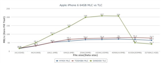 iPhone 6 64GB TLC NAND閃存加入了動態緩存技術
