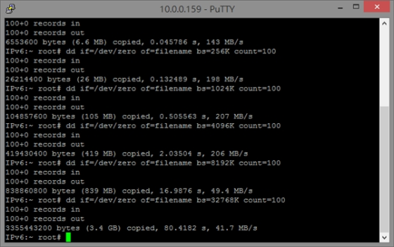 為了測試采用不同閃存顆粒的iPhone 6 64GB在磁盤性能方面是否存在差異,HKEPC使用SSH對樣機進行了DD Copy測試,分為Zero Fill(全零填充)以及Random Fill(隨機填充)兩種方式,進行1K、4K、16K、64K、256K、1024K、4096K、8192K、32768K大小文件測試,每個文件大 小重復100次。