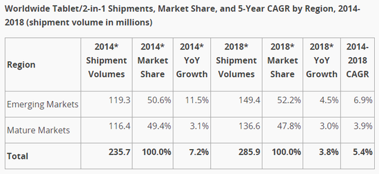 蘋果當(dāng)前iPad產(chǎn)品線擁有多款產(chǎn)品,為歷年來(lái)最為豐富的一次。但該公司今年的iPad出貨量預(yù)計(jì)只有6490萬(wàn)臺(tái),較去年的水平下降12.7%。而作為對(duì)比,2014年全球平板電腦出貨量為2.357億臺(tái),整體較2013年增長(zhǎng)7.2%。