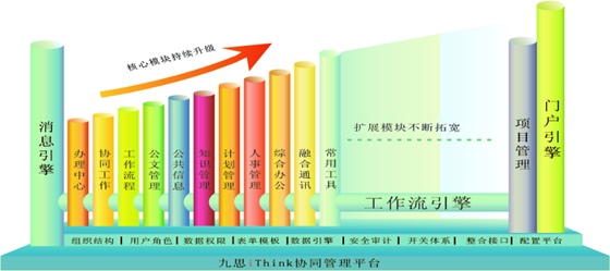 協同辦公系統涉及到全員使用和眾多功能需求,因此必須基于平臺+模塊+插件的模式,才能夠統一規劃、高效建設、可靠運行,從而推進可持續信息化發展。