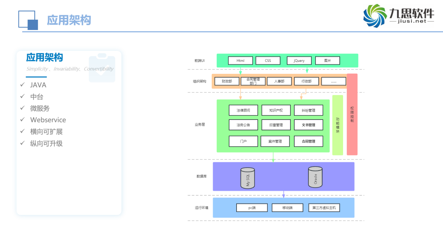 業務應用模塊覆蓋門戶、案件管理、糾紛管理、文書管理、法律顧問、法務公告、印章管理、知識產權、合同管理等功能應用;