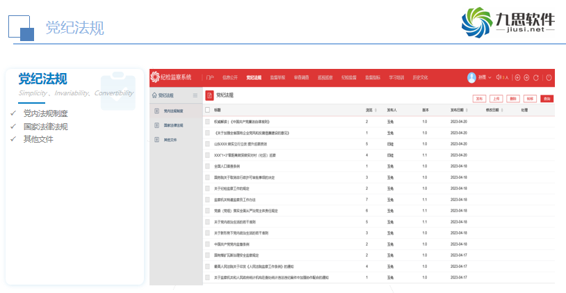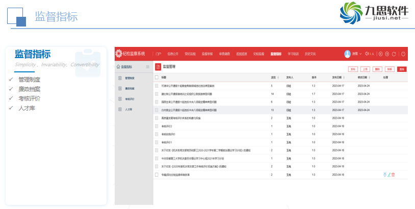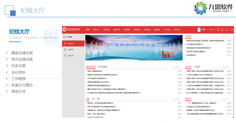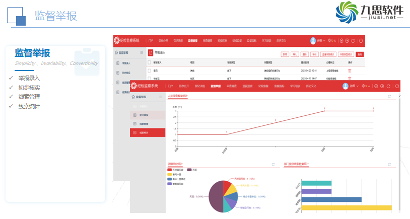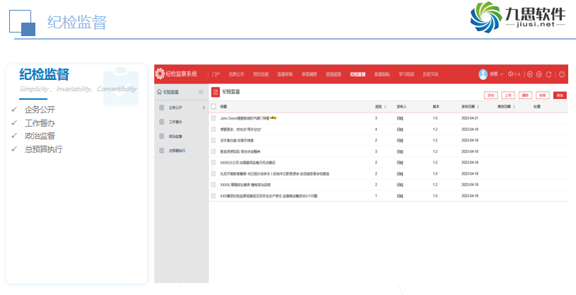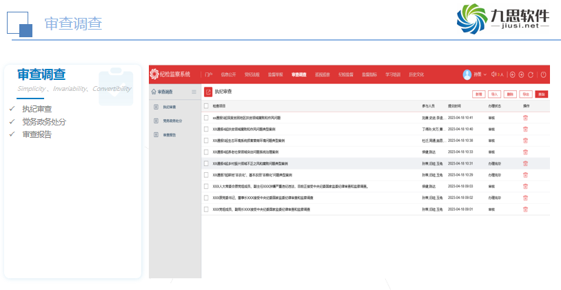 九思軟件創(chuàng)新“紀檢監(jiān)察+互聯(lián)網(wǎng)”特色,打造紀檢監(jiān)察平臺,助力紀檢監(jiān)察發(fā)展,書寫紀檢監(jiān)察時代新篇章。