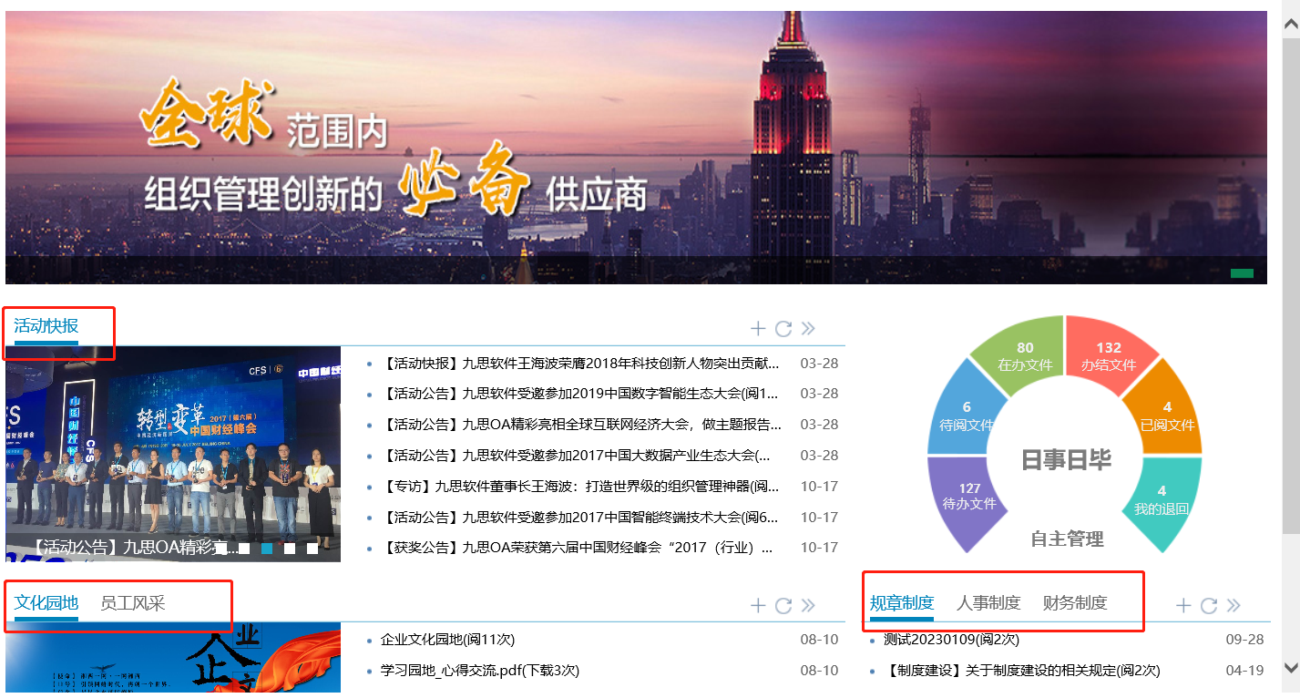 · 文化建設:支持企業內部新聞、公告、調查、討論等信息發布,加強企業形象文化、精神文化、行業文化建設,打造企業個性化的統一文化平臺。