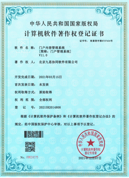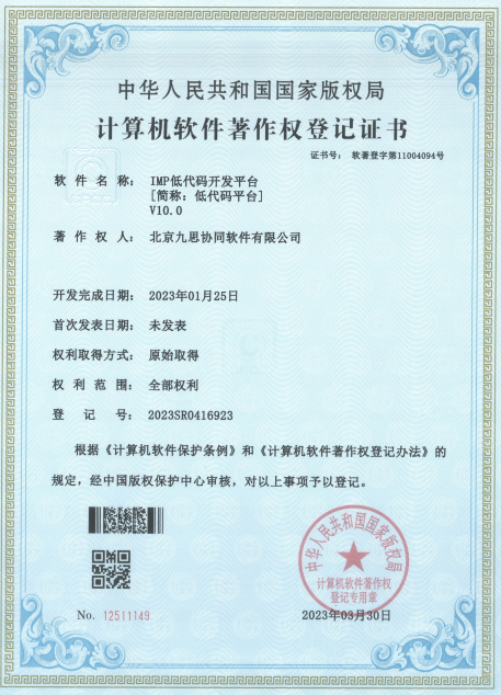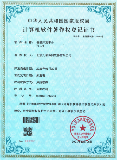 經過多年迭代研發,包括智能開發平臺以及組成平臺底層的九思智聯大模型平臺、IMP低代碼開發平臺、統一身份認證系統、門戶內容管理系統等功能逐漸完善,并取得了一系列軟件著作權。