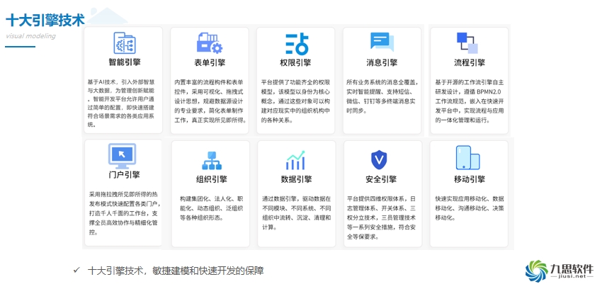 平臺內置十大引擎技術,敏捷建模和快速開發的保障。
