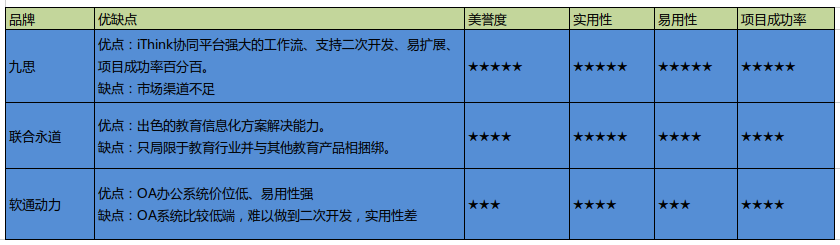 聯合永道有著出色的教育信息化方案解決能力,這雖是優點,亦是不足。在OA市場上,聯合永道只局限于教育行業,并與其他教育產品相捆綁。