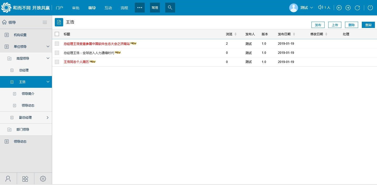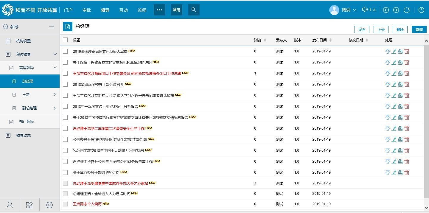 同時,各層次的領導動態會在領導動態的菜單下匯總展示。