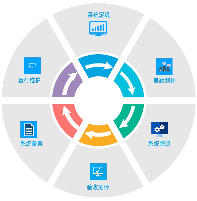 信息安全等級保護制度是國家在國民經濟和社會信息化的發展過程中, 提高信息安全保障能力和水平,維護國家安全、社會穩定和公共利益, 保障和促進信息化建設健康發展的一項基本制度。 我們根據信息系統的安全建設經驗, 提供針對信息系統全生命周期內等級保護建設整體解決方案, 從系統定級、差距測評、系統整改、驗收測評、系統備案、 運維維護整個生命周期中都具備相對應的解決方案。 可以幫助客戶建立完善的等級保護生態圈。