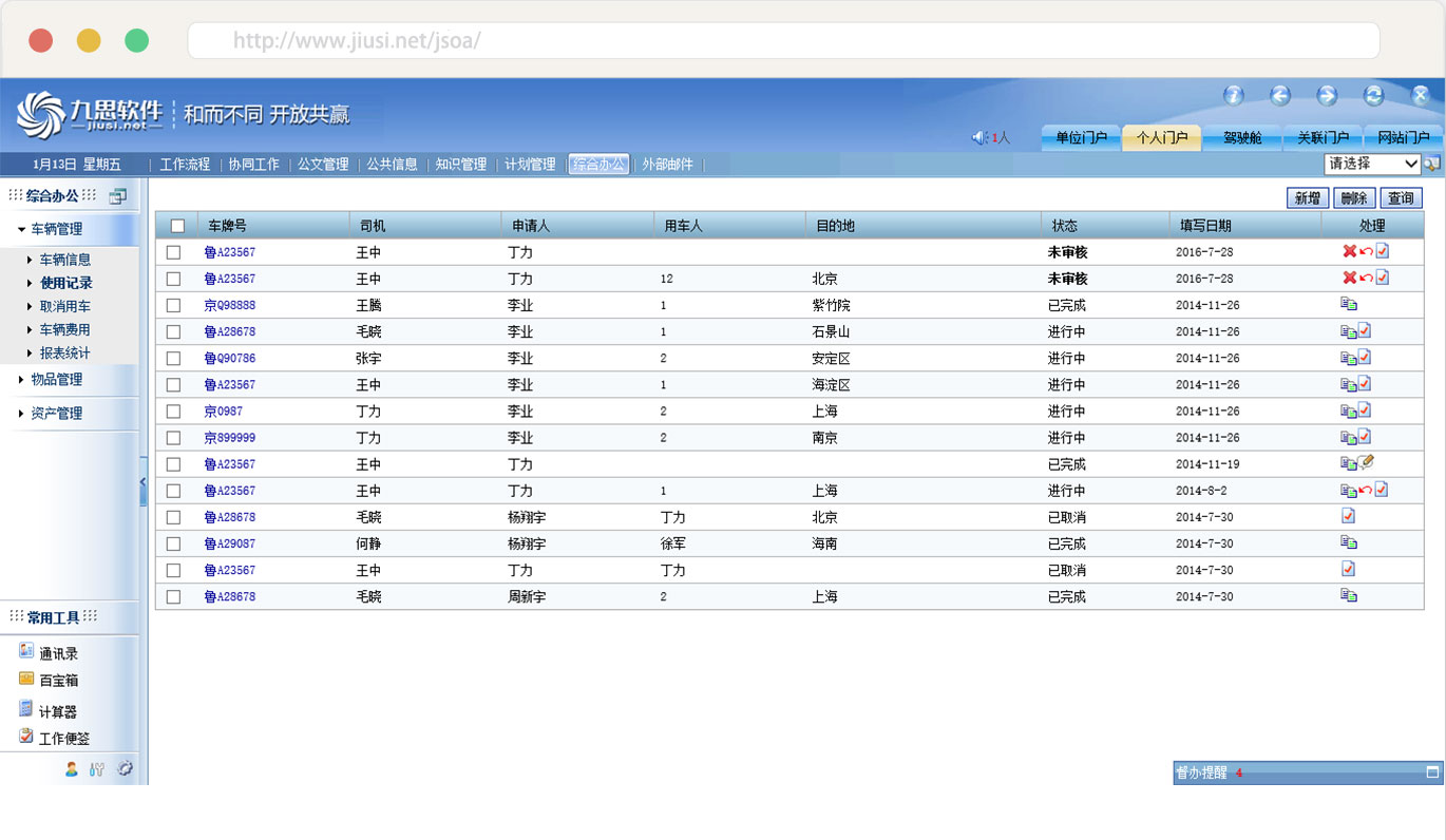 實現日常辦公用品領用、車輛調度管理、設備管理,規范管理流程,促進政府行政辦公效率。