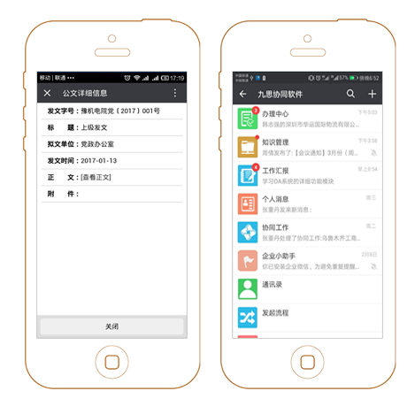 按照中央、國家和地方的公文辦理要求,九思OA辦公軟件政務平臺,功能包括我的收文、發文擬稿、發文草稿、發文查閱、發文設置、簽收公文、收文查閱、收文設置、公文表單等,并且公文的正文支持修改留痕、手寫簽名、套紅頭、簽章等各種應用。可靈活設定公文流程,自動進行流程跟蹤、催辦、查辦,并可歸類存檔和檢索。實現公文處理和管理的自動化。