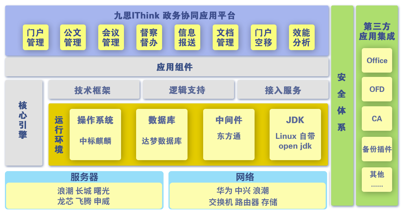 產品從硬件到軟件部分,包括服務器端、操作系統、數據庫、中間件等,全面支持國產化